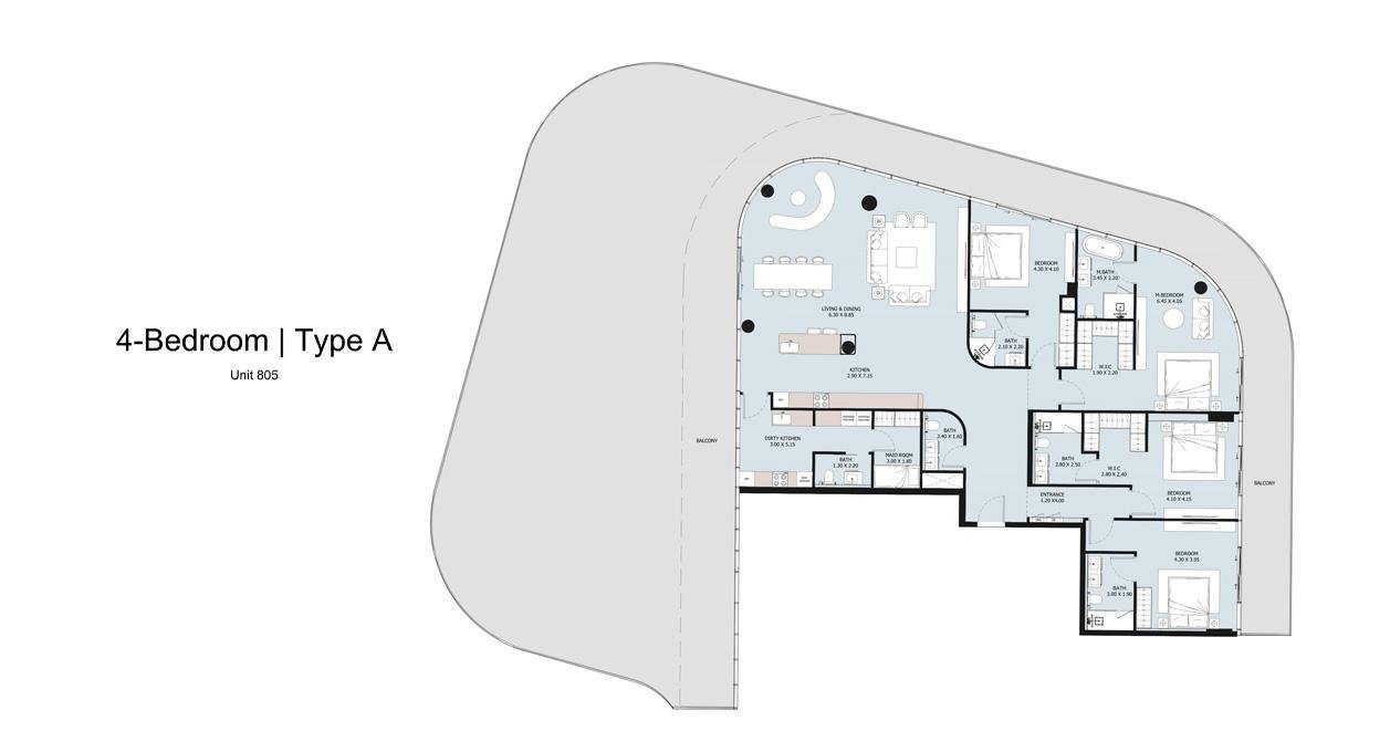 • Studio to 4-bedroom penthouse apartments with maid's rooms